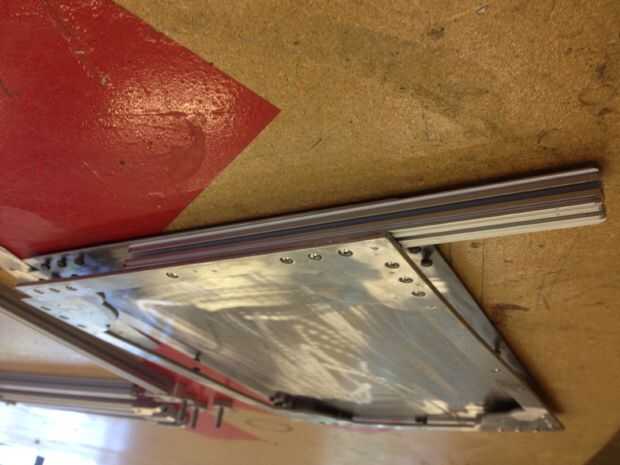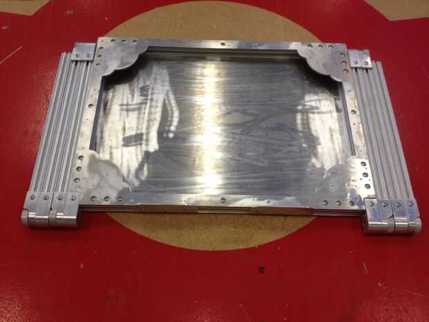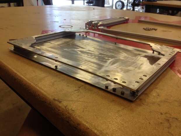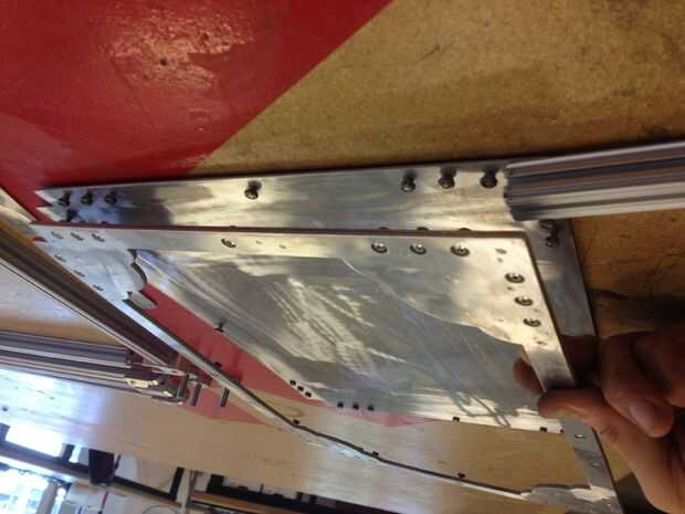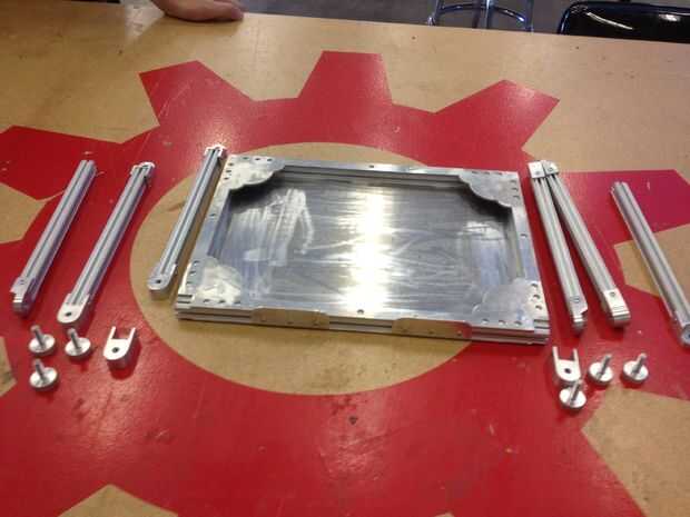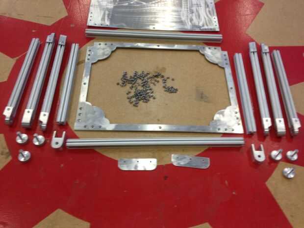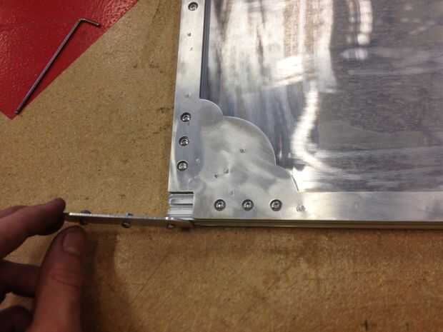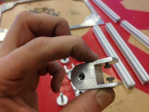 A partir de los dos lados cortos, luego se deslizó las protuberancias entre superior e inferior y aprieta el hardware que repetí con las protuberancias más.