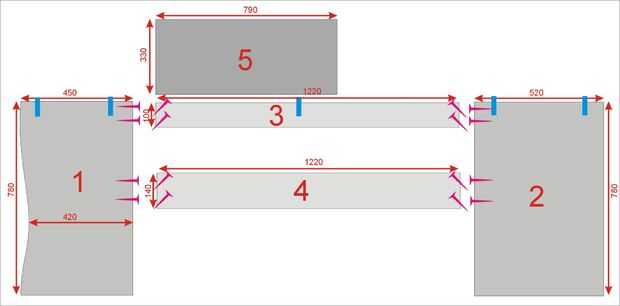 Siguiente paso es construir el marco principal de la mesa. Hay otra vez una feria poco de jugar con el juego necesario, pero ya que la mayoría de las formas aquí es recta, puede utilizar una estándar redondo de la sierra así (no tengo uno, así que continuó con la sierra caladora). La imagen muestra cómo hacer los cortes.