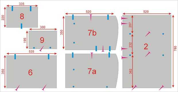 La imagen también muestra que las clavijas y tornillos vendrá - taladros para ellos ahora.