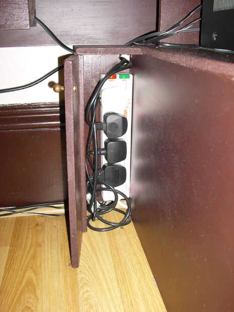 Ahora simplemente conecte el cable de extensión en la pared posterior y está lista. No te olvides de recortar algo de espacio en el tablero trasero - la cueva de cables para entrar y salir de la caja de alguna manera.