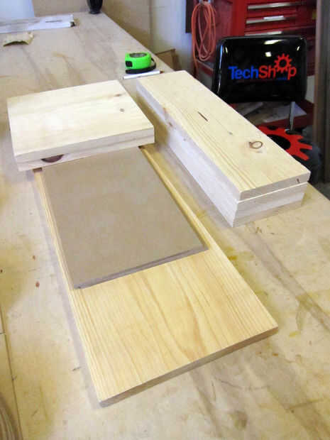 Para el equipo, he utilizado una sierra de mesa, sierra circular y taladro. También, la lijadora de banda para cuando tenía que fudge cosas para encajar, que más que me gustaría admitir. La construí en el San Francisco TechShop, que es un taller de libre acceso, por lo que tiene prácticamente todo tipo de herramienta en mano.