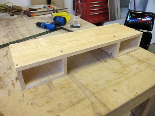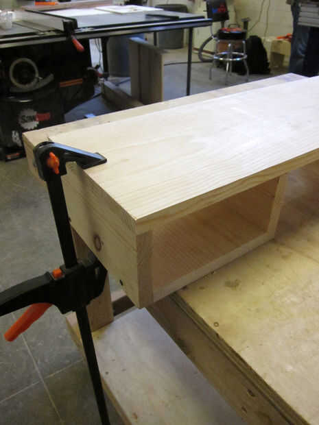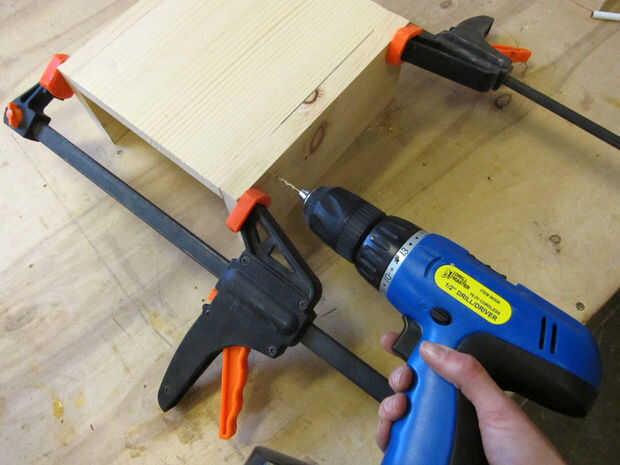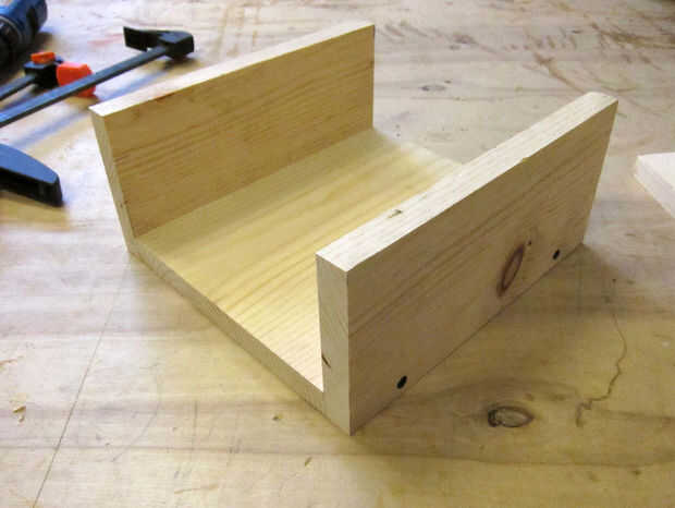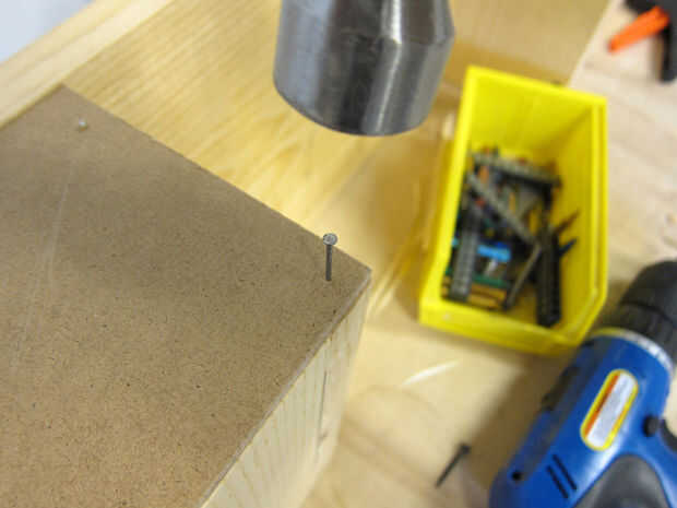 Atornillar marcos de cajón, con 4.5" piezas en el exterior.  Cuando haya terminado, un martillo en el soporte con algunos clavitos.
