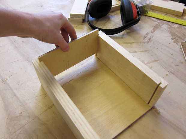 Hacer ranuras a lo largo de la parte trasera de los paneles laterales, asegurándose de que todas las piezas coinciden (a diferencia de la mina - como se puede ver en esta foto en mal estado y ha añadido un canal en la parte delantera por accidente!).