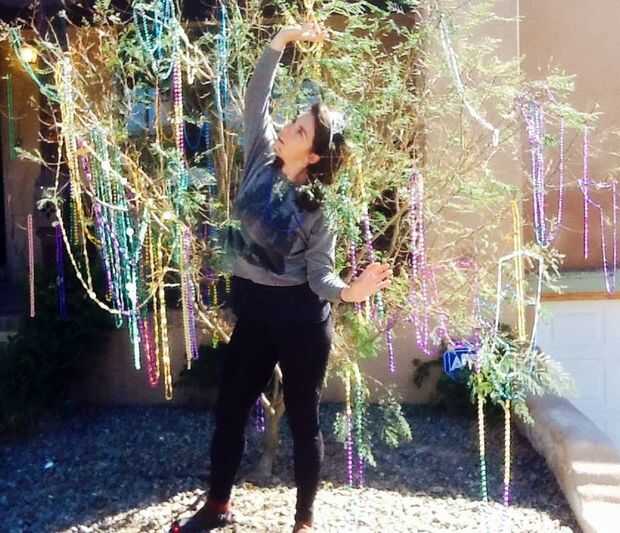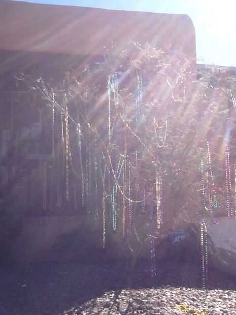 Tengo un amigo que vive en Albuquerque en lugar aquí en New Orleans por lo que para su cumpleaños quería enviar su gusto un poco del lugar que nos reunimos. Conspiró con una mujer de craigslist para cubrir un árbol en el patio de mi amigo con Mardi Gras bolas temprano en la mañana en su cumpleaños. Hablamos de compensación y pidió un modelo de Rumpelstiltskin para su biblioteca.