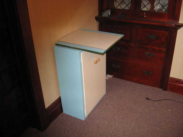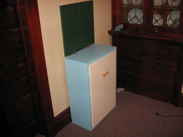Desafortunadamente, actualmente estoy remodelación la sala que este escritorio se colocará, por lo que no puedo tomar fotos de él en contexto. Una vez que haya terminado esa zona, puedo tomar fotos del escritorio donde irá. Como se puede ver aquí sin embargo, la superficie de trabajo normalmente es, exponer la pizarra. Cuando mi hija desea trabajar, ella tirará hacia abajo, exponiendo la pizarra / escritura de superficie la superficie de trabajo. En su interior, con el... * suspiro *... loverly papel Contac, tendrá un montón de espacio para almacenar papel, crayones, libros, etc..