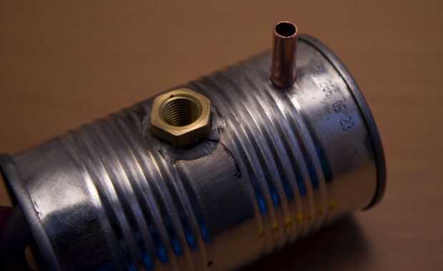 Después de que el cuerpo de la caldera de la soldadura es completa. Puesto que no estamos utilizando una válvula para evitar que el tanque de ruptura bajo una situación de válvula cerrada, que decidí ver qué presión la tubería pop off (suponiendo que lo sería). La manera más segura para llevar a cabo esta tarea es llenar la caldera y línea de conexión con agua luego utilizando una bomba de aire para presurizar el sistema. Mediante el uso de un gran volumen de agua incompresible minimizamos la cantidad de aire dentro de la caldera que reduce grandemente la fuerza concussive si el poder fuera romper antes una línea aparecida.