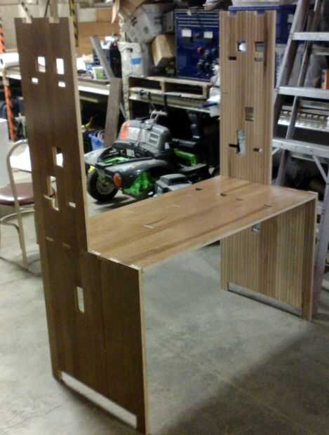 - Esta es su última oportunidad para recortar cualquier proyección, cantos adicional y asegurarse de que sus tornillos estén al ras. Paso atrás y asegúrese de que está satisfecho con el resultado. Toma asiento y escribir algo... finge escribir en su teclado. Cualquier ajuste final debe hacerse ahora.