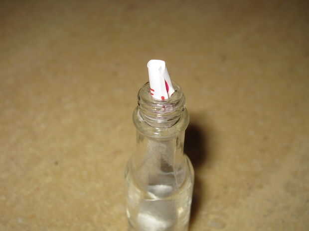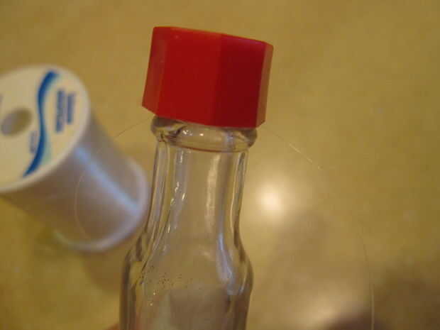 Atar un hilo de nylon alrededor del cuello de la botella, , pero no cortar del carrete aún.