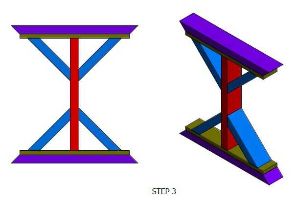 Coloque "Pierna – Horizontal – 45 grados" en la parte superior e inferior de los ensambles de las patas como se muestra. Utilicé una pistola de clavos y el pegamento para este accesorio.