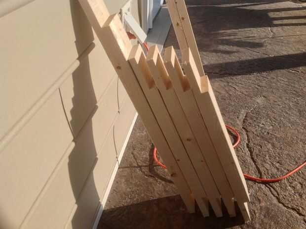 a la altura de la pierna. (mina fueron 29 1/4") Luego cortar cuatro piezas a la profundidad de la tabla.