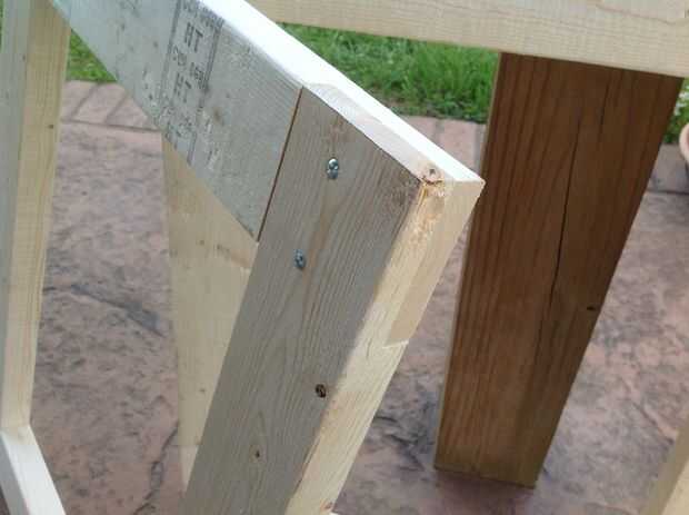 la articulación hasta un poco más. Sólo usé pegamento para madera y dos tornillos de 1 1/4" en cada articulación para ensamblar las patas.