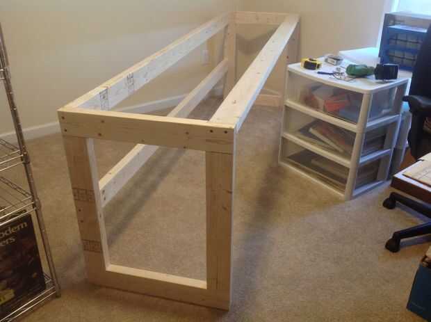 Ensamble las patas acabadas en los rieles. Usé los 3" tornillos para esto. Usted puede recibir ayuda