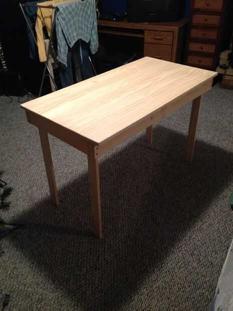 Después de esto, la arena y acabado según sea necesario. Utilizaría la mancha si se usa pino. Marcador una vez había manchado dos veces con Arce colonial Minwax y luego poner varias capas de poliuretano en. Asegúrese de que lijar entre capa y capa de poliuretano (utilicé Minwax semi-gloss). Si utiliza tinte con base de aceite, utilice aceite base poliuretano. Usé grano 320. Después de la primera aplicación tienes que lijar mucho. Si utiliza pino, usted querrá hacer múltiples capas de poliuretano por lo que la escritura no abolla la madera. Después de esto haya terminado. Sentarse en el escritorio y disfrutar.