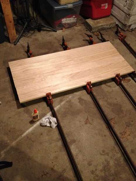 Paso dos, siete de la 1x4x4s pegan. Tratar de hacer un final perfectamente (con un cuadrado de la velocidad o una tabla recta) para que sólo tengas que recorte un extremo. Es mucho más fácil si pegar una tabla en un momento. Dar el pegamento al menos 30 minutos a secar mientras sujeta y luego añade la siguiente junta. Una vez que están todo afianzado con abrazadera juntos, dejaremos toda la noche si es posible para secar. Más aún las tablas son el siguiente paso será más fácil. Retorcer las juntas para que sean nivel uno con el otro en la medida de lo posible.