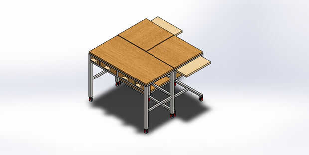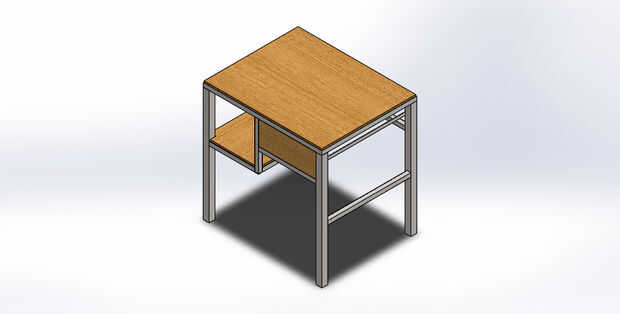 Comencé a hacer un modelo base de SolidWorks que pude actualizar el diseño más fácil. Ahhh la tecnología. Empecé con el escritorio principal y construido a partir de ahí. Decidió la mesa treinta pulgadas de la tierra basado en mesas y escritorios que encontré en mi dormitorio. Venga, sí. Yo era ese niño raro discretamente medición mesas donde estudié. Todo en nombre de la investigación. Entonces decidí que la mesa debe ser aproximadamente 40" largo de proporciones visualmente he probado en el modelo de SolidWorks. Yo sabía que quería el conjunto de escritorio para empujar juntos como un cuadrado, por lo que la mesa tuvo entonces que 20" de ancho. Me tiré en unos cajones y unas piezas de acero aquí y allá, y terminé. Hice unos cálculos sobre el estrés de esfuerzo de torsión, que nunca acabé usando y lo llamó un diseño de sonido.