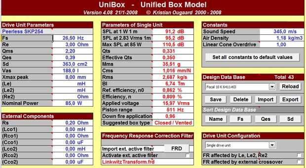 Estos programas necesitan conocer los parámetros Thiele-pequeños de controladores en orden para que trabajen. Fabricantes más respetables publican.