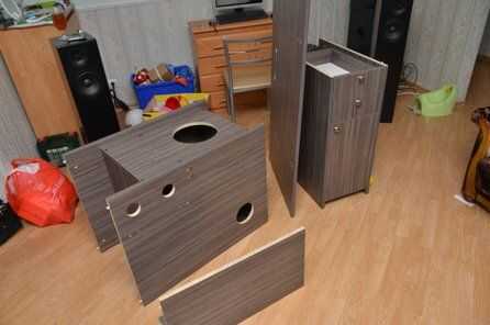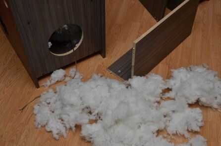 Puesto que se trata de una construcción de tablero de partículas laminado, habrá algunas costuras en las construcciones de subwoofer. Rellenar con silicona u otro sellador. Llenar el recinto con relleno de 2 o 3 almohadas, luego atornille el amplificador bass reflex controlador puerto y subwoofer en lugar.