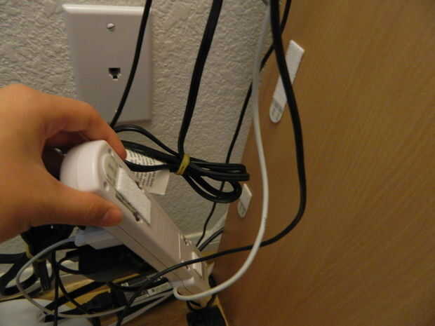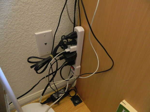 Más mantener sus enchufes en el suelo que resulta en la recolección de polvo y podría potencialmente conducen a chispas si no limpia.  Para ayudar a, puede colocar los tapones laterales en un escritorio.  Lo que hice fue tomar dos de las tiras y posición que podría sacar el enchufe si es necesario.  Con esto, mi piso es mucho más limpio y menos polvo.