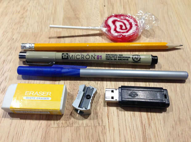 En la bandeja pongo mi pendrive, clips de papel, binder clips, sacapuntas y caramelo :)