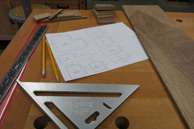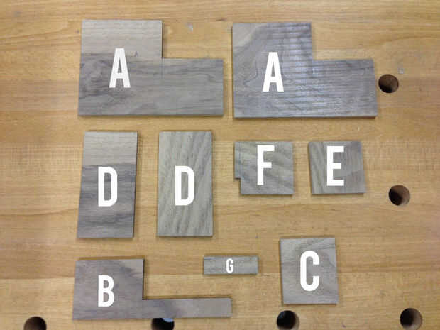 Usando una cinta métrica y un cuadrado, marqué la madera. Usando una sierra de cortar y una sierra, cortar todas las piezas necesarias. Pude ver la mayoría de los cortes con la tronzadora. Utiliza la sierra para el interior esquina cortes sobre piezas A, B y f el.