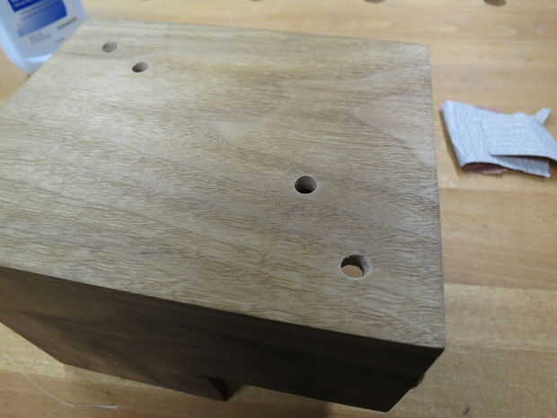 Perforé dos agujeros en la parte inferior de cada compartimento del plantador. No medir ni marcar la ubicación de los agujeros - sólo lo comentar porque realmente nadie verá estos agujeros. Creo que utilicé una 3/8 broca, pero el tamaño no importa mucho tampoco. Lijar los agujeros ligeramente si es necesario.