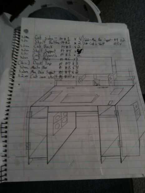 (Cuadro 1) Después de mudanza me di cuenta que tenia casi la mitad de las herramientas que necesitaría para construir esta mesa, así que tuve que diseñar el escritorio, las dimensiones y gadgets para cuando un viaje de vuelta a casa era posible.