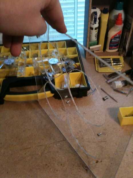 (Imagen 5) Una vez que marqué los agujeros de montaje en el plexi que luché con cómo iba a conseguir estos agujeros de 4 pulgadas. Yo agrietado algunas piezas con brocas y un detector de humo con el rojo caliente café puede intentado derretir a través del vidrio con y finalmente se estableció el uso de una rueda de corte con el dremel y tomando mi tiempo. Los agujeros no son perfectos por un largo tiro pero la fricción calienta el plexi lo suficiente como para permitirme hacer giros suaves.