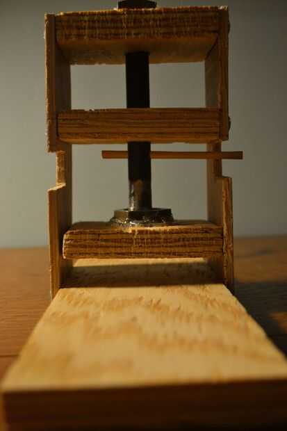 Ahora, completaremos la construcción de la prensa principal pegando la tuerca para el tornillo de vuelta a través de.