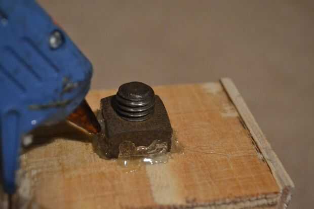 1 cuando el perno de rodillo está en una buena ubicación, enroscar la tuerca y pegamento caliente a la madera.