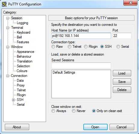 Cuando el Pi es el se puede acceder a la CLI con masilla. Ahora se puede proceder a ejecutar este comando: