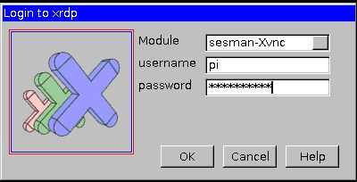 Introduzca su nombre de usuario (generalmente pi) y su contraseña y pulse ok.