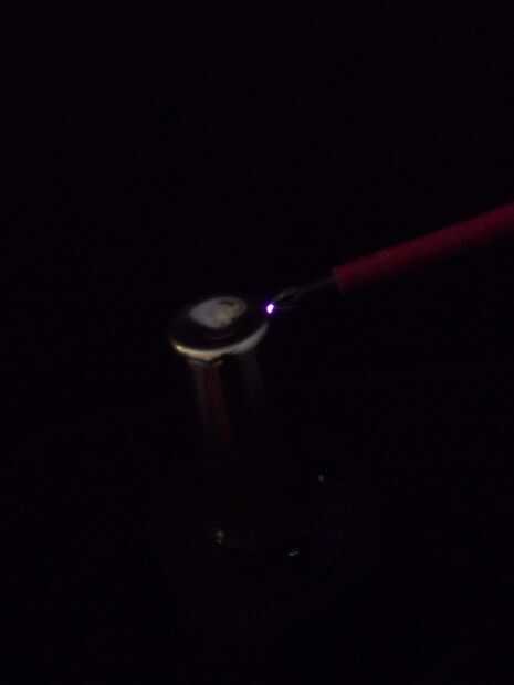 Puede conectarlo a una fuente de alimentación y encenderlo, sólo tenga cuidado de no tocar el conductor de cobre. Usé un destornillador aislado para obtener un arco de ella. No es demasiado grande porque no conecto el destornillador a la tierra, pero si haces el arco debe ser más grande, mal lo dejo a usted.