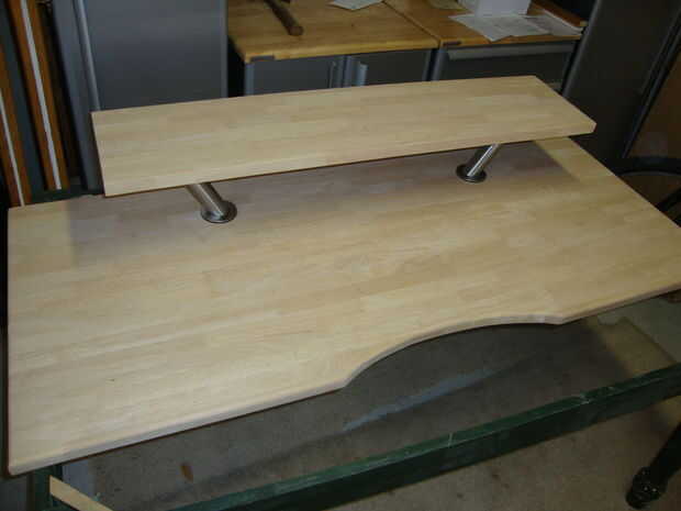 Después de que los soportes se montan en el estante, mida la longitud de la plataforma y restar de la longitud de la mesa. Dividir por dos y restar arriba X y reste 3 (gestión de las tabicas del estante). Este número es la distancia desde el borde de la mesa (en ambos lados) que debe tener para perforar un orificio (el tamaño es en las direcciones de los soportes y se me olvida lo que es).