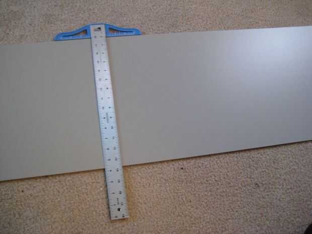 Para cortar la fibra de madera utilicé repite cuidado de golpes a lo largo del borde de una escuadra hasta que finalmente hice mi manera a través del material. Esto tomó cerca de 30 pases repetidos, pero quería un corte limpio.