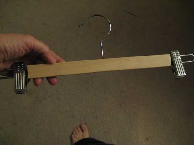 Mi tina tiene una manija en el lado, así que adjunto este hangar de ropa modificada para gancho en eso y le dan cierta estabilidad.