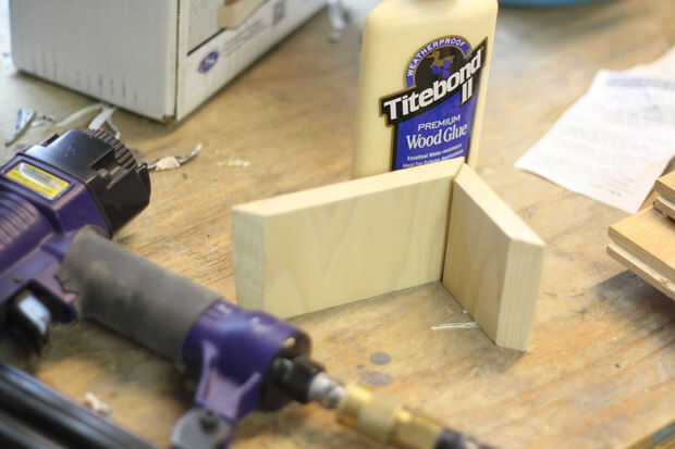 Tengo una pistola de clavos del aire, por lo que es lo que yo solía armar minas. Usted puede apenas como fácilmente uso acabado clavos o tornillos. Te ayudo a pretaladrar para ambos. Y sólo para la fuerza agregada algún buen pegamento de carpintero en las articulaciones.