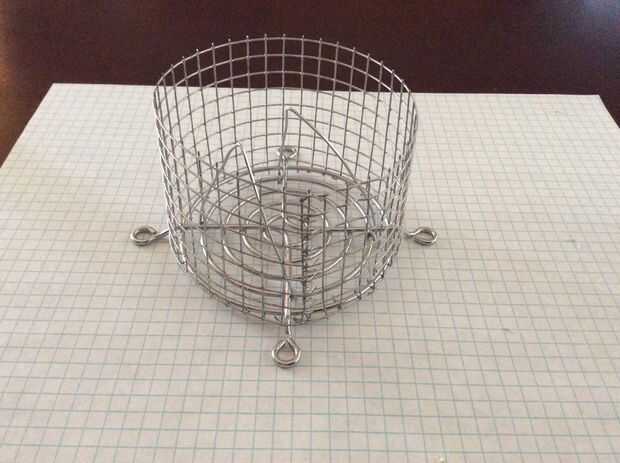 La malla de alambre sirve como un soporte para el cilindro de acrílico. La malla es alto por ancho 34 8. Las plazas de la malla son 1 cm por 1 cm.