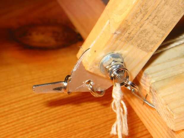 Después el pasador de liberanción Honda construí el gatillo. El diseño del gatillo es sencillo, un aro metálico, conectado a un alambre, se coloca sobre el tornillo que sostiene el pasador de liberación de Honda en el lugar. Para disparar el trebuchet, tirar para sacar el tornillo y el brazo de lanzar el anillo se suelta. Equipo de pesca nuevo se utiliza extensamente aquí.