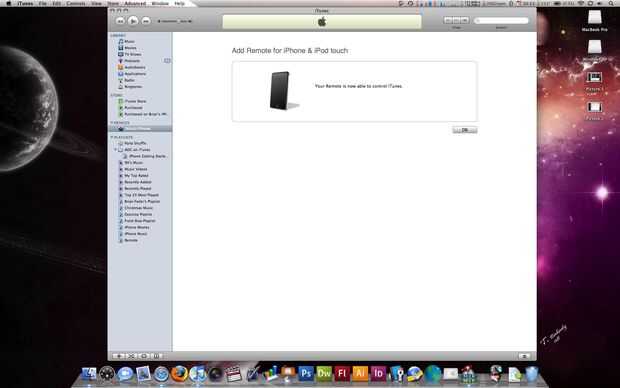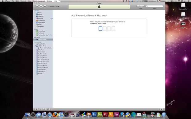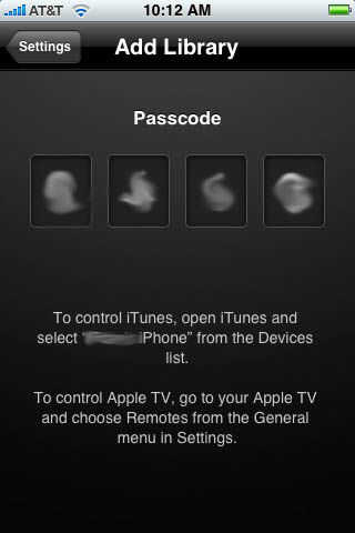 recoger su iphone/itouch y lanzamiento de distancia. Haga clic en Agregar a biblioteca. Le dará un código como el siguiente. (Yo fuera borrosa porque no confío en ti) En el extremo de iTunes verás el teléfono pop-up con el icono de remoto a su lado. Haga clic y escriba el código de acceso.