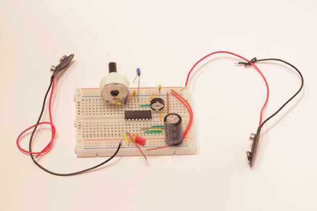 El segundo potenciómetro controla la frecuencia de modulación. Usando el osciloscopio o un frecuencímetro, gire hasta que usted consigue sobre una señal de 40-50kHz de la salida (sin nada conectado a la entrada). Si no tienes ninguno de esos, juega con el control hasta que oiga la señal.