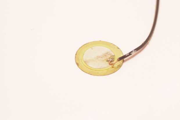 Los 'electrodos' son realmente transductores. Usted puede elegir los discos piezoeléctricos en línea, o en una tienda de electrónica. Trate de buscar 'piezo' o 'piezo elemento.' Sólo tiene que conectar con el lado del piezoeléctrico en cada uno: los discos forman un circuito eléctrico a través de la superficie de la piel. (Esto puede ayudar a la señal de ser oído, puesto que los nervios son muy sensibles a la electricidad.) No te preocupes: hay tan poco corriente que fluye entre los electrodos que se sentirá nada. (Y aunque no soy un profesional médico, no creo que hay alguna forma podría hacer daño).