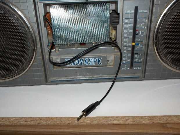 Suerte hacia fuera, no pasó mucho tiempo para encontrarla. ahora a soldar el cable con las conexiones y tengo música. El reproductor de mp3 controla el volumen por lo que puedo bajar la radio así que no puedo oírlo.