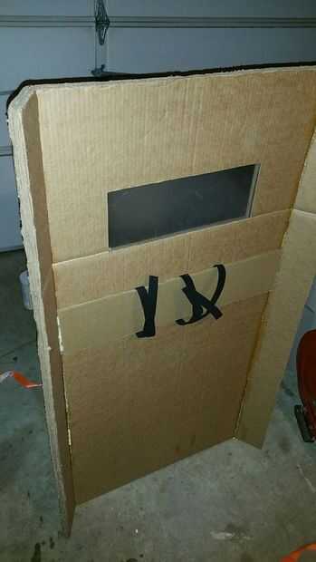 hice un Escudo antidisturbios para la diversión y aquí está cómo hacerlo...Primero encontrar un cartón que el tamaño de su escudo de antidisturbios.A continuación, abra un orificio como un visor (un rectángulo). (primera imagen)Después de que hace un