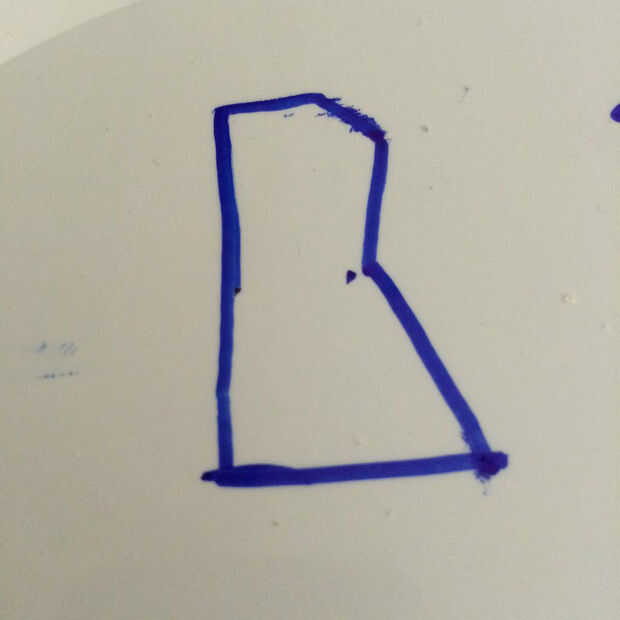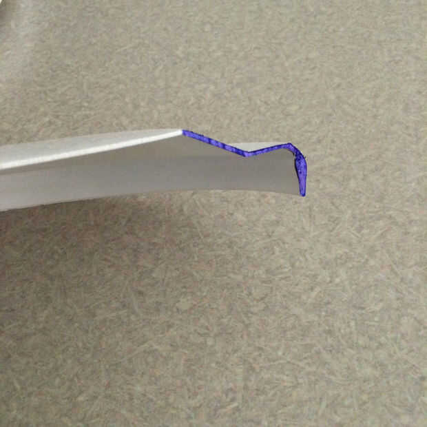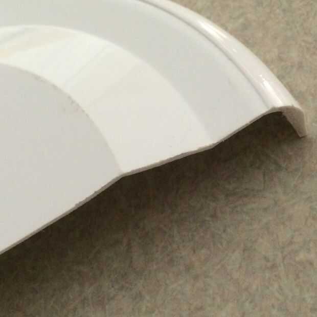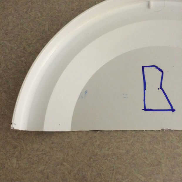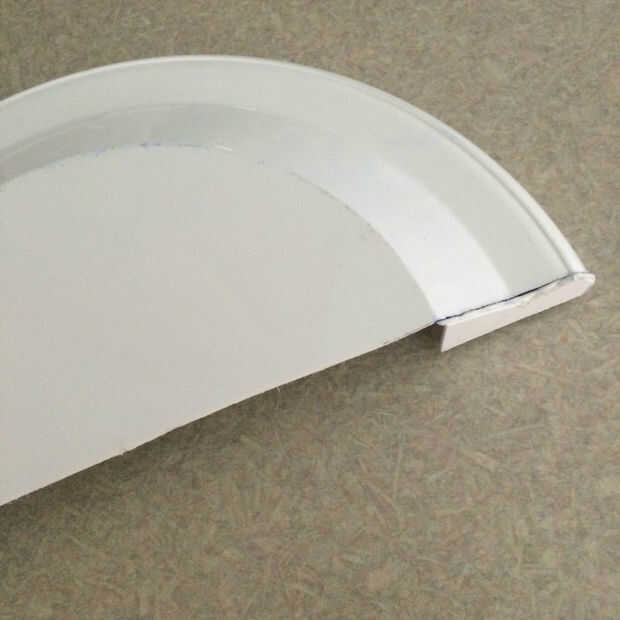 Elegir la mitad del frisbee a utilizar como la hélice y el otro para el desecho. Utilice un marcador y correr por el borde recién cortado del frisbee no chatarra. Empuje sobre la chatarra frisbee como un sello (el borde de tu frisbee puede ser distinto a la mía, que está bien). Hacer esto dos veces y cortar con la sierra.