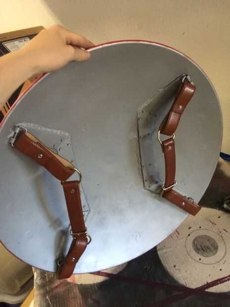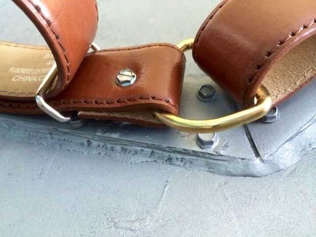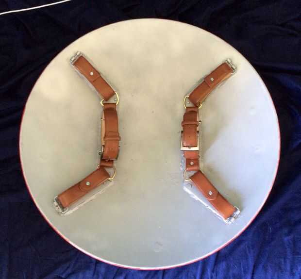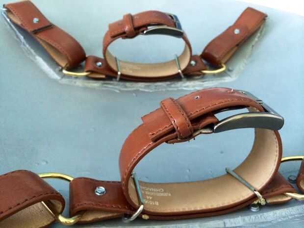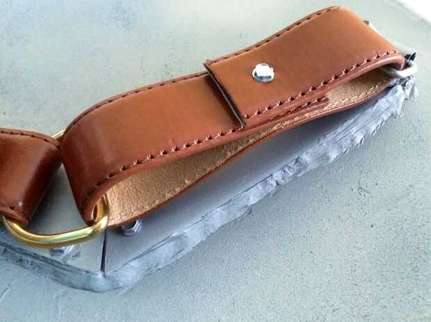 Ahora es el momento para agregar los controladores principales. ¿Recuerda poner las anillas dos rectangulares 9" pieza de cuero? Son para que usted puede deslizar en la porción restante de la hebilla del cinturón. Aquellos serán las manijas de brazo! Usted necesitará tomar el taladro y hacer algunos agujeros pequeños por lo que puede, bien, la hebilla de la hebilla.