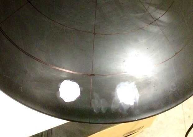 Preparar el trineo para pintar desenroscando las manijas del escudo y dejando de lado. Ahora habrá 5 agujeros total en el escudo. Utilice la masilla de la reparación para rellenar y cubrir los agujeros y dejar endurecer. Cuando la masilla se haya endurecido con éxito, use su lijadora de Palma a suavemente y con cuidado, suavizar la masilla. Una vez que el trineo no agujeros a la izquierda, utilice la lijadora de palma para desbaste hasta el exterior y el interior del trineo.