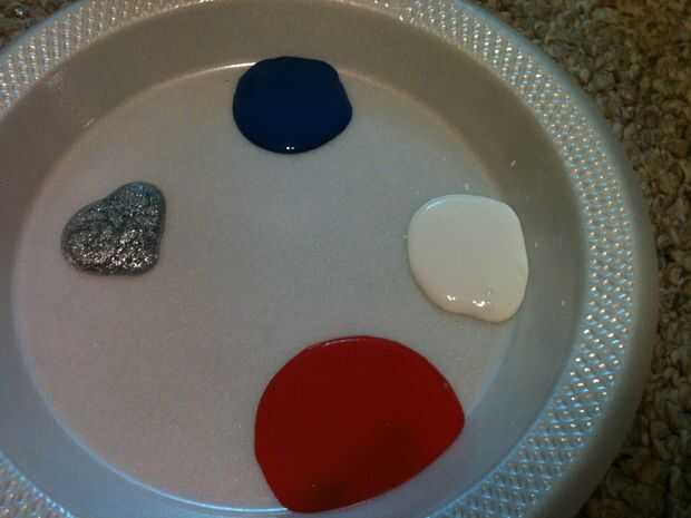 en primer lugar, extienda una tonelada de periódicos o una bolsa negra grande y elegir sus pinturas (azul y blanco rojo funcionan mejor!)