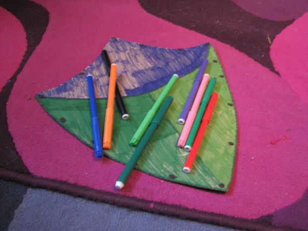 Halloween pasado mi hijo quería ser joven por lo que l le hizo un escudo de cartón resistente para complementar su traje. Amaba el escudo no sólo él todavía juega con él y sus primos tienen cada uno requerido para cuando hacen creer cuatro espadas av
