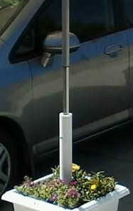Una vez que los plantadores para la anchura máxima de las piernas del dosel (el mío es un toldo de 10 pies por 10 pies BTW), abrir y cerrar la capota e inserte cada pierna en cada tubo de los plantadores.