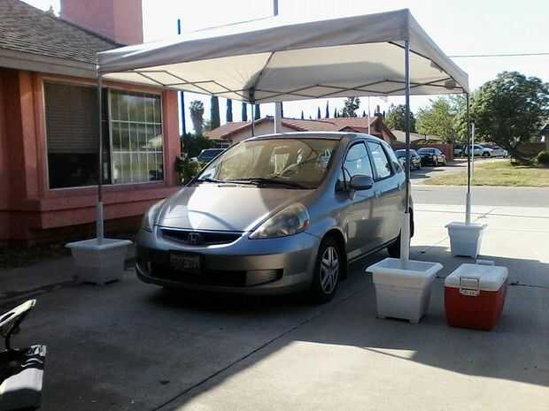 Lo que hice después de conseguir que se establecieron y en lugar, estaba el taladro un agujero piloto a través de la tubería y la pierna en cada jardinera y ejecuta uno mismo-perforación tornillo a través para fijar el toldo en caso de una tormenta de viento debe intentar hacer con el dosel.